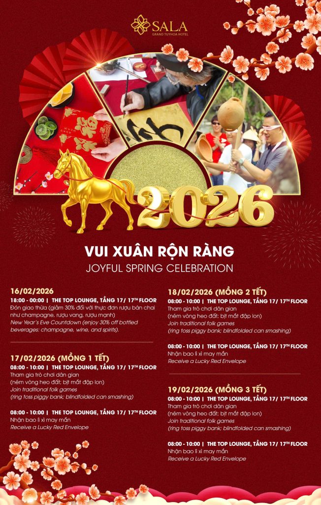 Welcoming the Year of the Horse, Sala Grand TuyHoa Hotel cordially invites you to join us in celebrating a festive season rich in traditional cultural colors, featuring many engaging and meaningful activities.