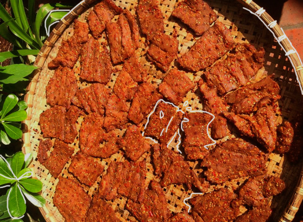 Bò một nắng-muối kiến Phú Yên (Dried beef with yellow ant salt)