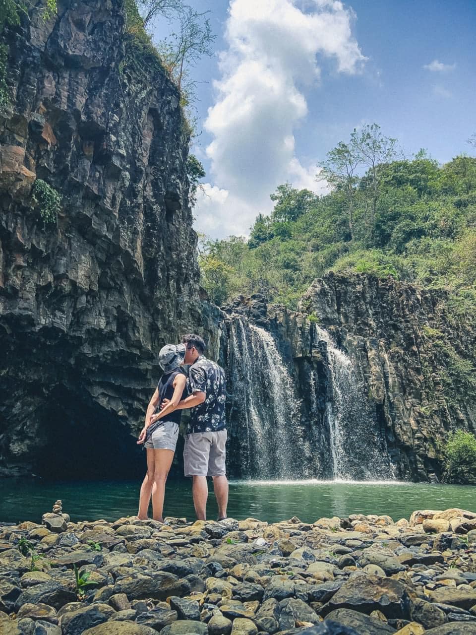 Vuc Hom, which is about 35 kilometers (km) north of the city center, is actually a perfect spot because of its 20-meter-high waterfall and vast, clean, cold lake that are encircled by stacked cliffs.