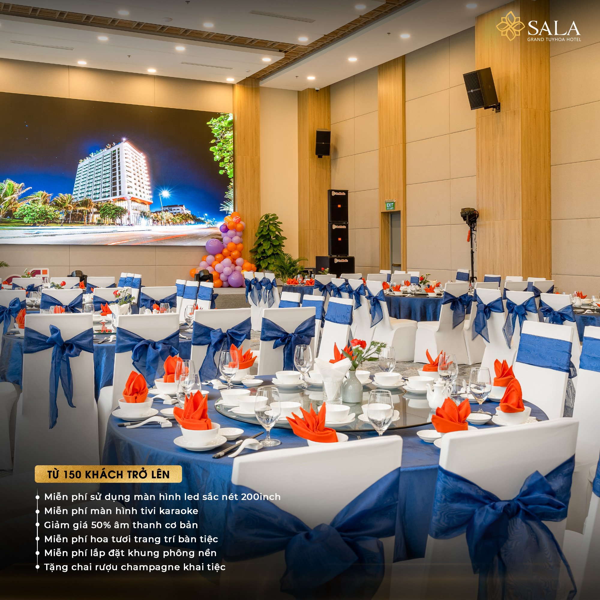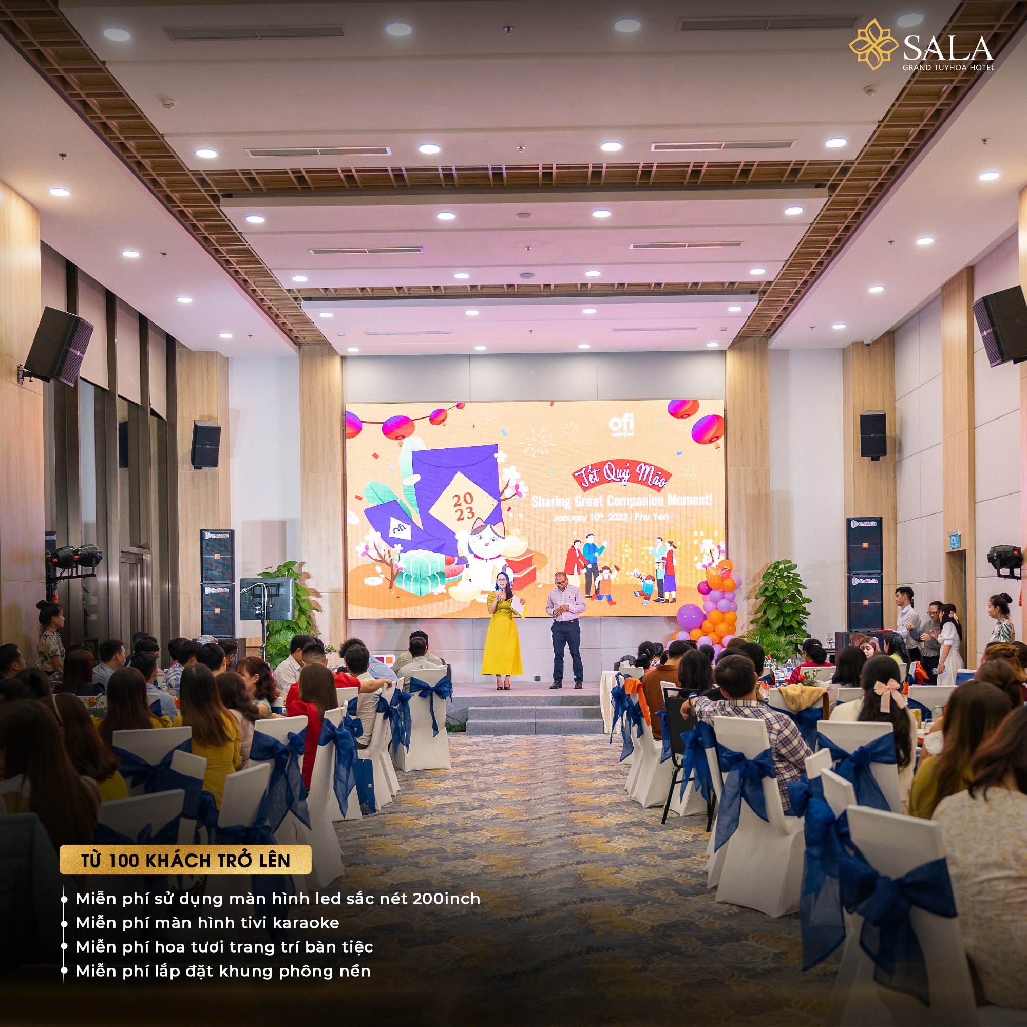 Bạn đang tìm địa điểm tổ chức tiệc cuối năm tại Tuy Hòa? Sở hữu chất lượng dịch vụ theo tiêu chuẩn 5 sao cùng loạt gói ưu đãi hấp dẫn, Sala Grand TuyHoa Hotel chắc chắn là lựa chọn sáng giá mà Quý khách không thể bỏ lỡ.