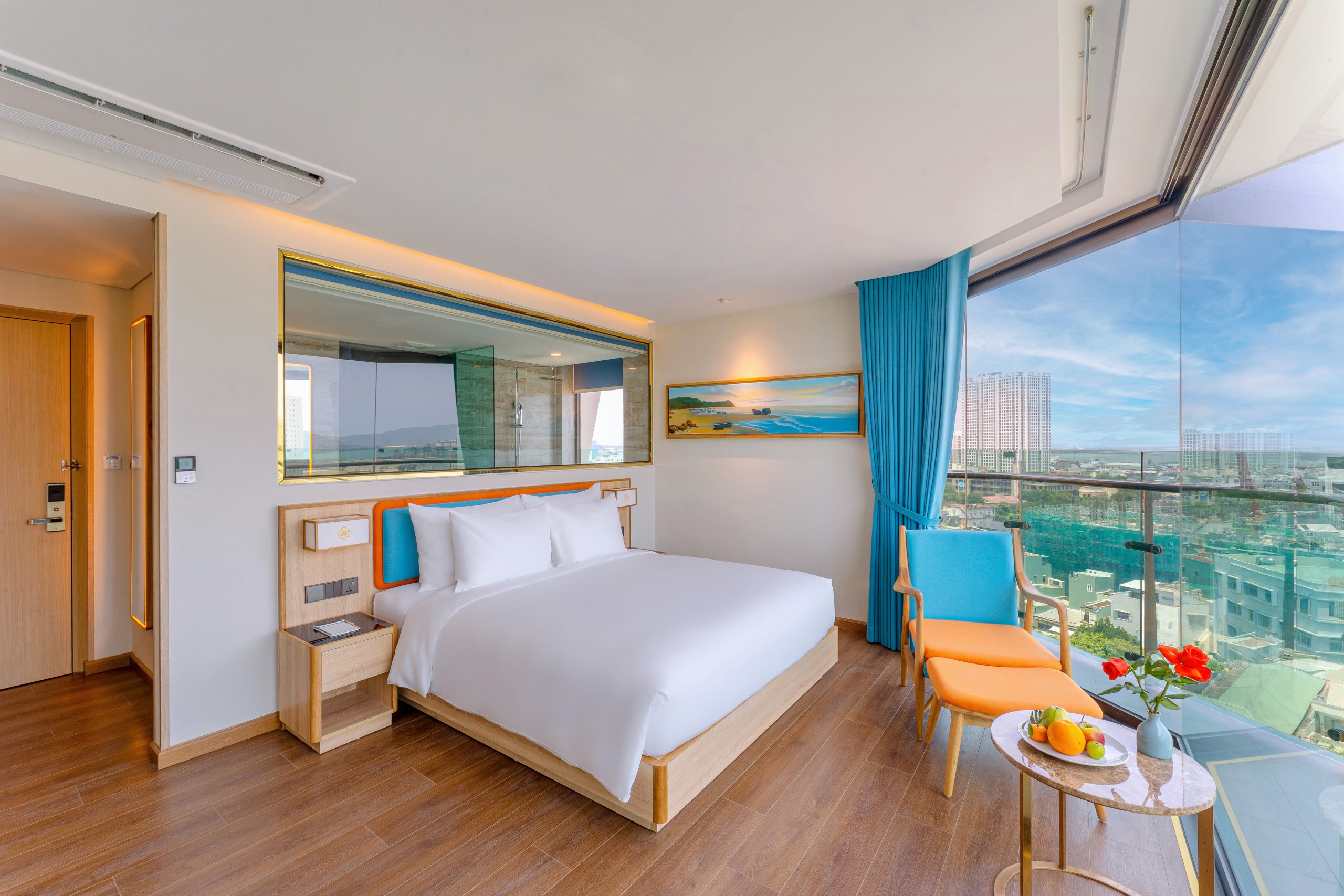 Trải nghiệm khoảnh khắc bình minh tuyệt đẹp trên biển Quy Nhơn ngay từ căn phòng của bạn, cùng những con sóng dịu dàng chào đón mỗi sớm mai.