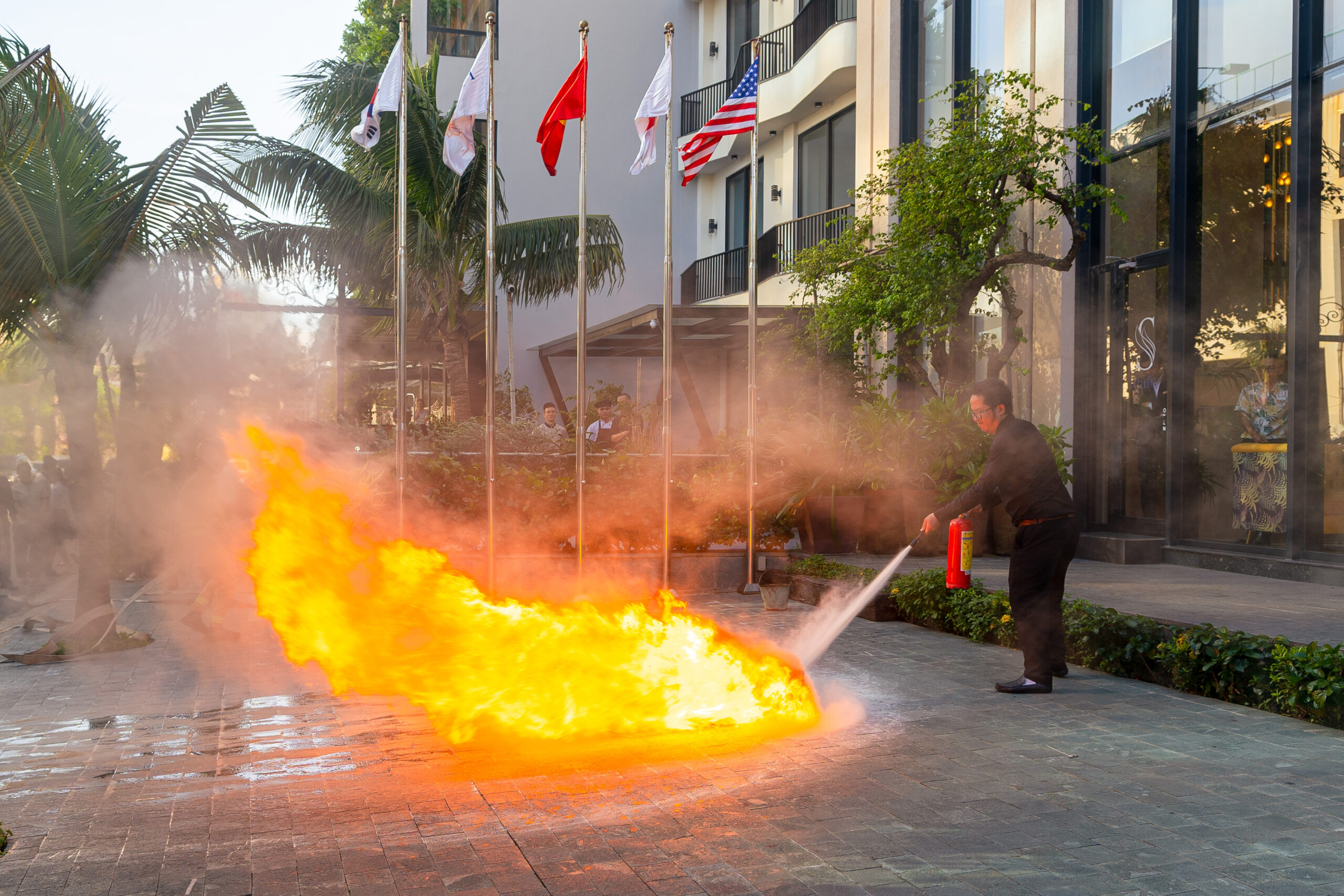- Tuân thủ các quy định về phòng, chống cháy nổ. Tổ chức diễn tập phương án chữa cháy và cứu nạn cứu hộ theo định kỳ 02 lần/ năm. Kiểm tra hệ thống báo cháy trong toàn khách sạn theo định kỳ 01 lần/ tháng;