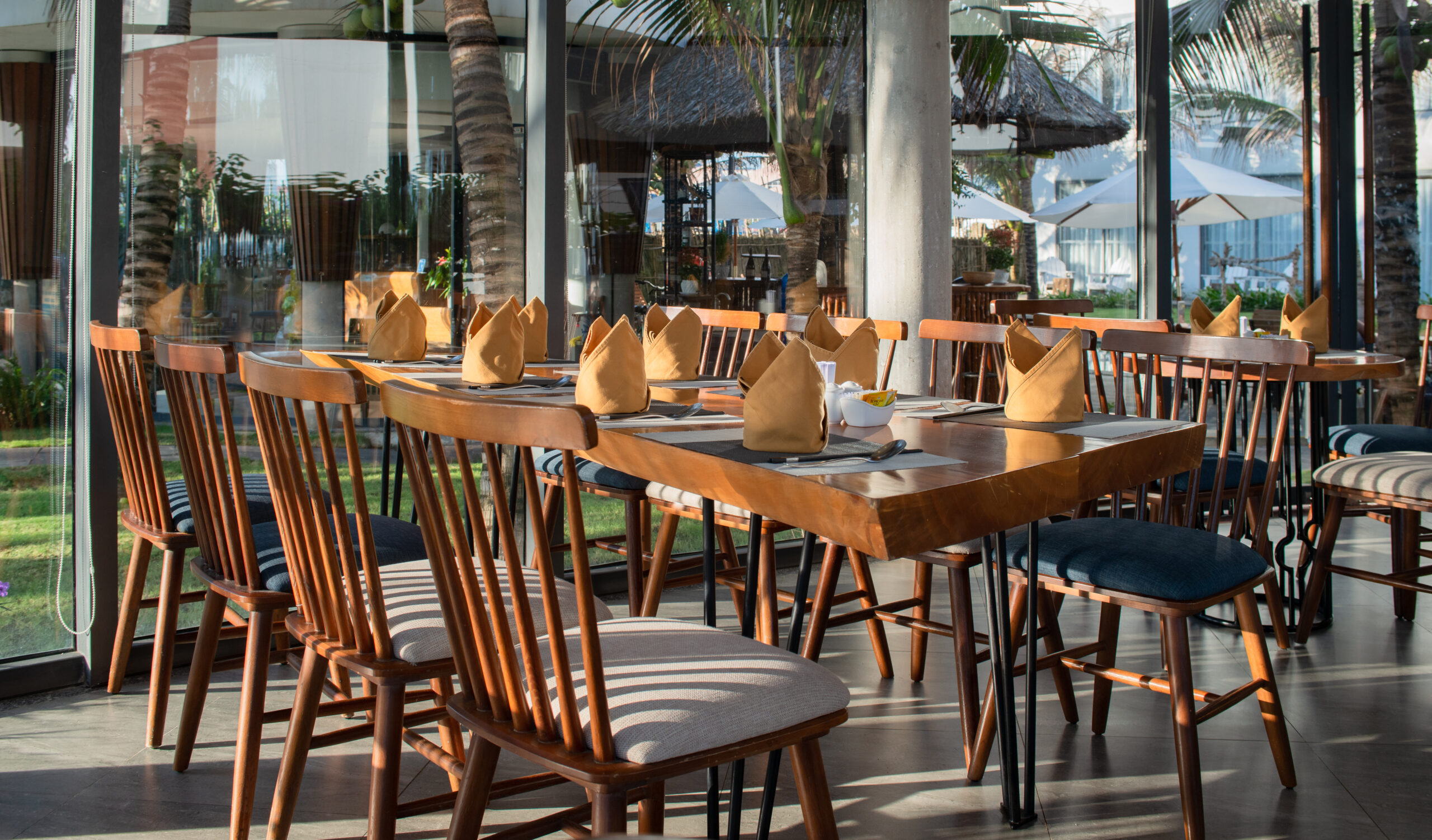 Để đưa nắng ấm, thiên nhiên xanh mát chạm đến du khách trên mọi bước chân, nhà hàng Sala Tuy Hòa Beach được thiết kế với cửa kính bao quanh như khoang thuyền giữa biển cỏ cây. Trong lòng nhà hàng Sala lại có một chiếc thuyền nho nhỏ “chở đầy” món ngon, đa dạng [...] [...]