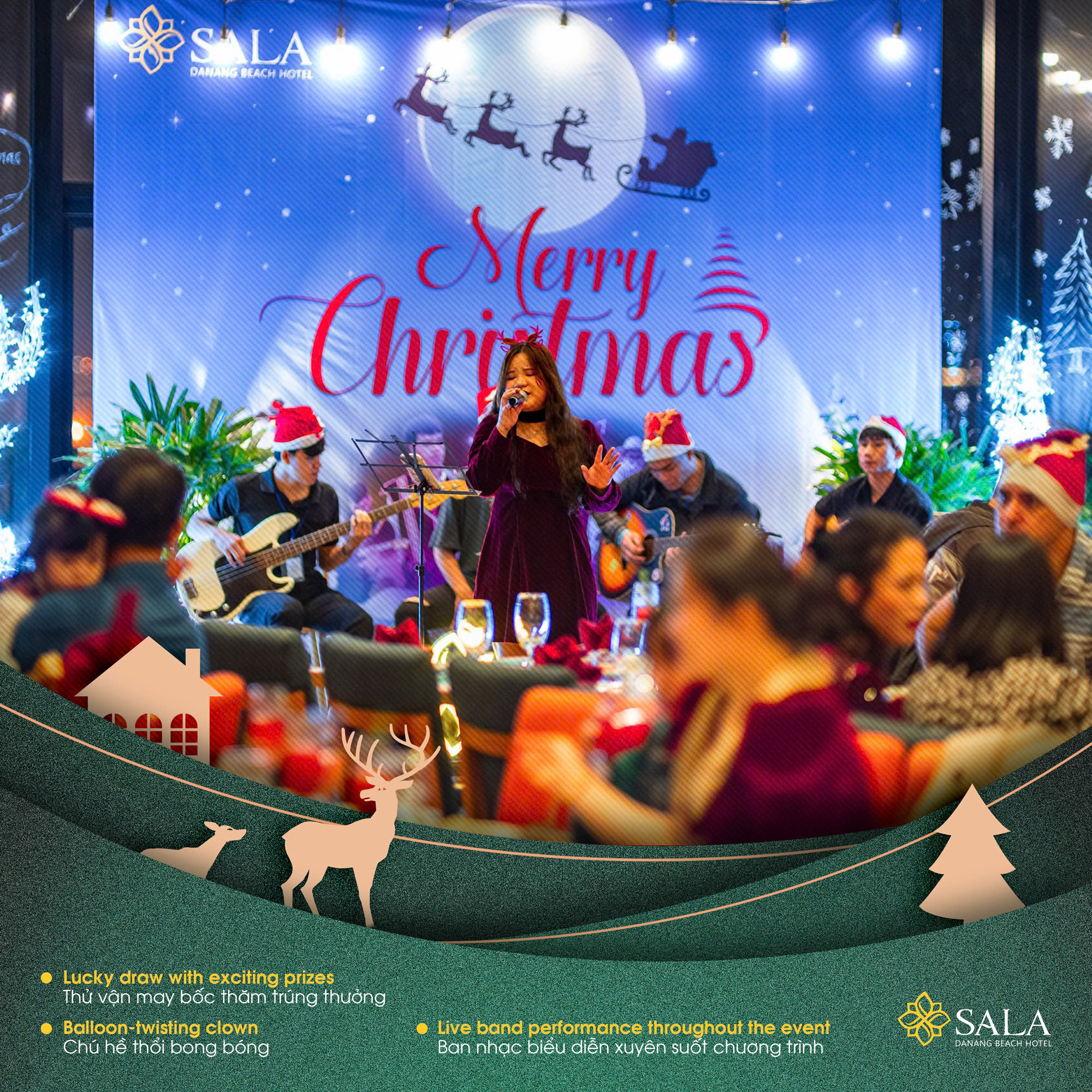 At Sala Danang Beach Hotel, we’ve prepared a meaningful Christmas Eve celebration just for you. With a warm atmosphere, festive decor, delicious food and drinks, and lively music, it promises to be an unforgettable evening with loved ones.