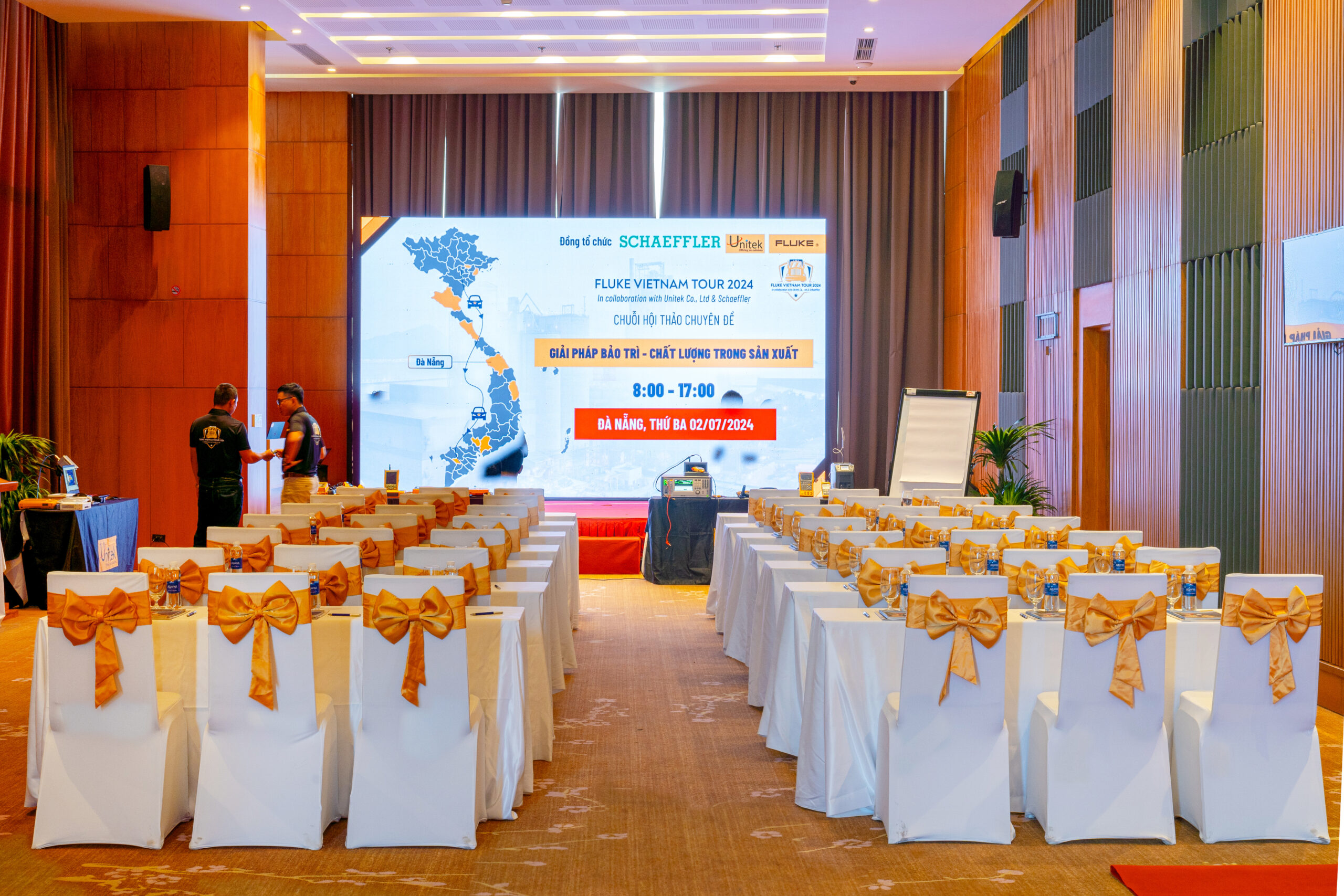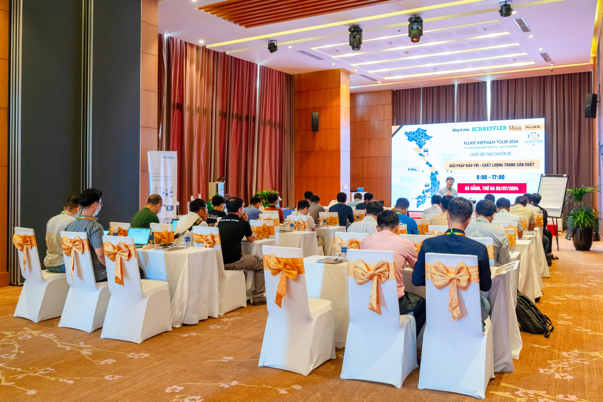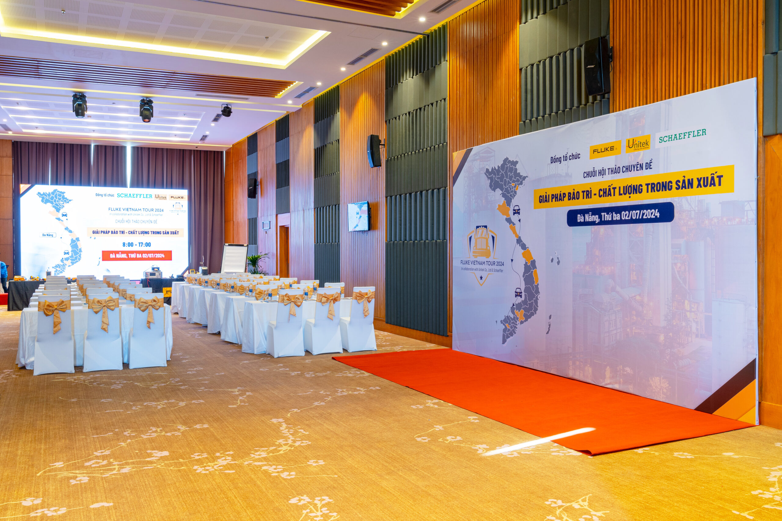 - Flexible space and layout (round table style, U-shaped style, theater style,…) with a capacity of up to more than 200 guests;