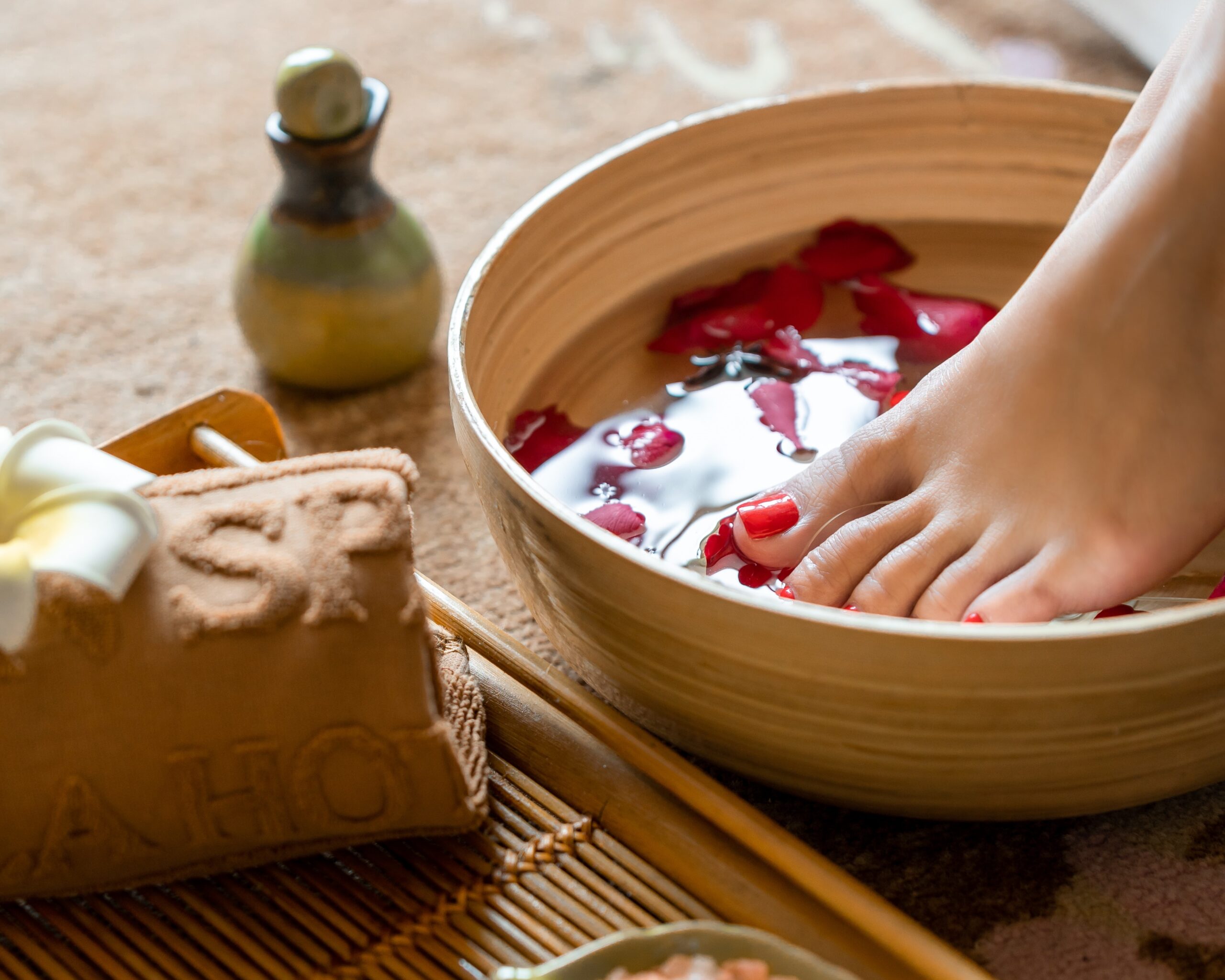 • 10 phút ngâm chân thảo dược và tẩy tế bào chết bàn chân